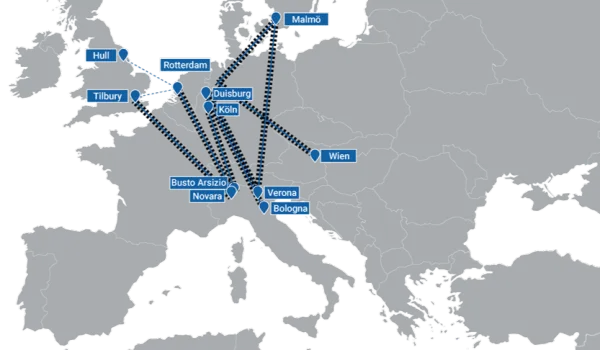 - integrazione con terminal intermodali strategici in Italia (Busto Arsizio, Verona, Bologna, Bari) e in Europa.